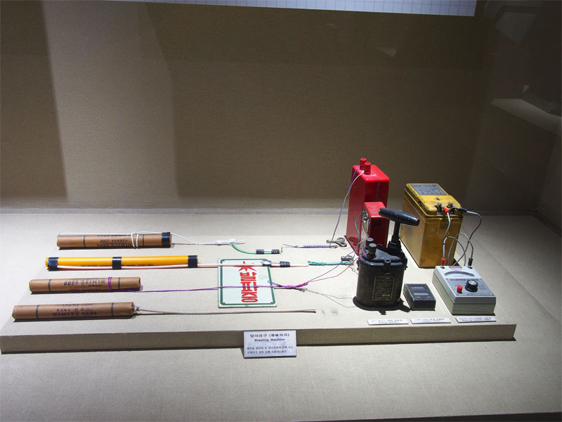 화약이 있으니 스위치도 있어야겠죠. 어디 영화에서 쓰던 발파 스위치도 보입니다. 이거 한 번에 자칫 잘못하면 여러 사람의 목숨이 걸려 있으니 쓰는 사람은 매번 마음을 졸여야 했을겁니다.