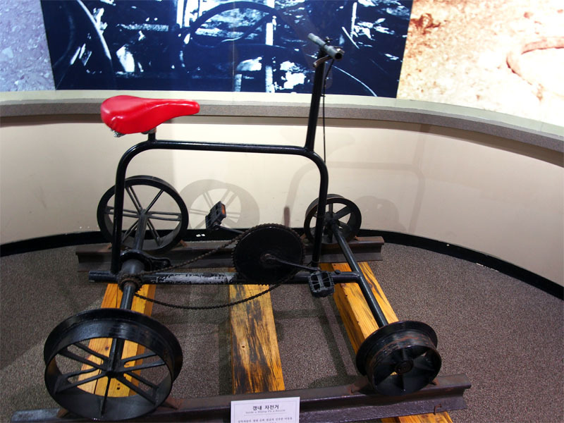탄광에서 내부 이동용으로 쓰던 자전거입니다. 참으로 저렴하게, 현장에서 남는 부품을 가지고 용접하고 조립해 만든, 현장 사람들의 노고가 느껴지는 실용적인 디자인입니다.