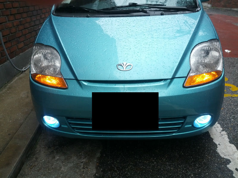 그러면 안개등으로 LED 램프를 넣으면 어떻게 될까요? 대충 이런 모습이 됩니다. 일단 시험용으로 쓴 차량은 GM 2세대 스파크(일명 올뉴마티즈)입니다. 이 넘은 포지셔닝램프를 켜야 안개등을 켤 수 있습니다. 또한 포지셔닝램프로 전조등을 쓰지 않고 방향지시등을 씁니다. 보통 안개등에서 쓰는 할로겐 램프보다는 빛이 주광색에 더 가깝게 나오는데, 그 때문에 처음에는 어색하고, 안개등용 LED 램프는 직진성이 강해 전조등의 보조용으로 쓰기는 어렵습니다.(할로겐 램프가 있을 때는 앞부분을 조금 더 밝게 하는 효과가 있었지만, 이제는 기대하기 어렵습니다.) 하지만 직진성이 좋아야 하는 안개등의 특성을 생각하면 오히려 위치를 더 정확히 알려주는 효과를 낼 수 있습니다.